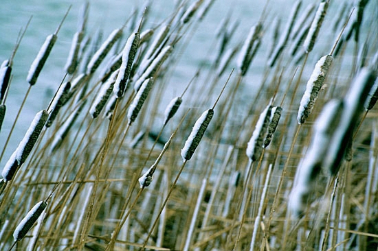 風雪に耐えるガマの穂